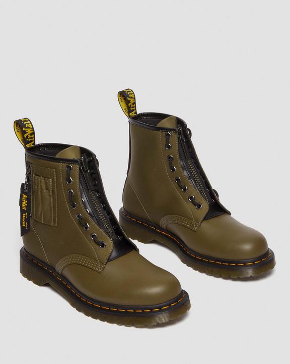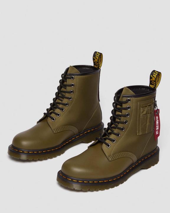 :: Dr. Martens 1460 Ben Alpha Industries Nylon & Leather Lace Up Boots Olive/Black | SN-DM84129