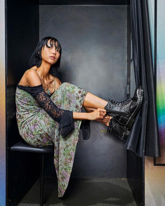 :: Dr. Martens 1460 Gothic Americana Leather Lace Up Boots Czarne | SN-DM84807