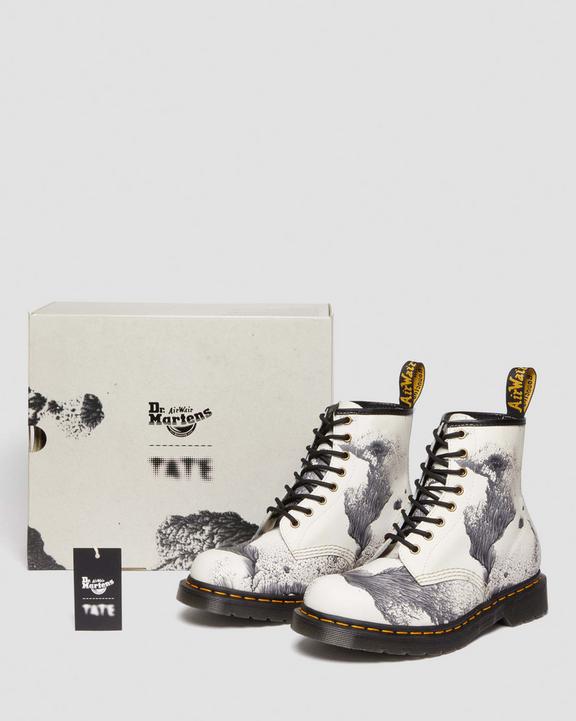 Our collaboration with Tate imbues our classic 1460 boot with the attitude of provocative British surrealist and occultist Ithell Colquhoun — whose accomplishments are often overlooked alongside the towering male figures of Surrealism. The boot is made with Backhand leather, providing a new canvas for Colquhoun’s ‘Example of Decalcomania Technique’, which is achieved by randomly applying paint to paper or canvas, pressing another sheet of paper or canvas over the top, and revealing images when peeled apart © Tate. The sole is grooved and secured with our signature yellow welt stitching, and the top of the boot is tagged with our black and yellow heel loop.