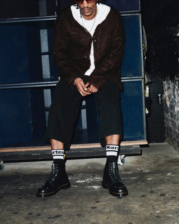 Dr. Martens history is built on functional workwear designs. Our classic 1460 boot is retooled with a metal toe plate inspired by safety boots on factory floors. Constructed from soft Milled Nappa leather in contrast to their rigid predecessors. The 1460 boot features an 8-eye lacing system and removable jungle front zip and black and yellow heel loop. Set on our smoke DMS outsole and secured with a DM’s yellow welt stitch.