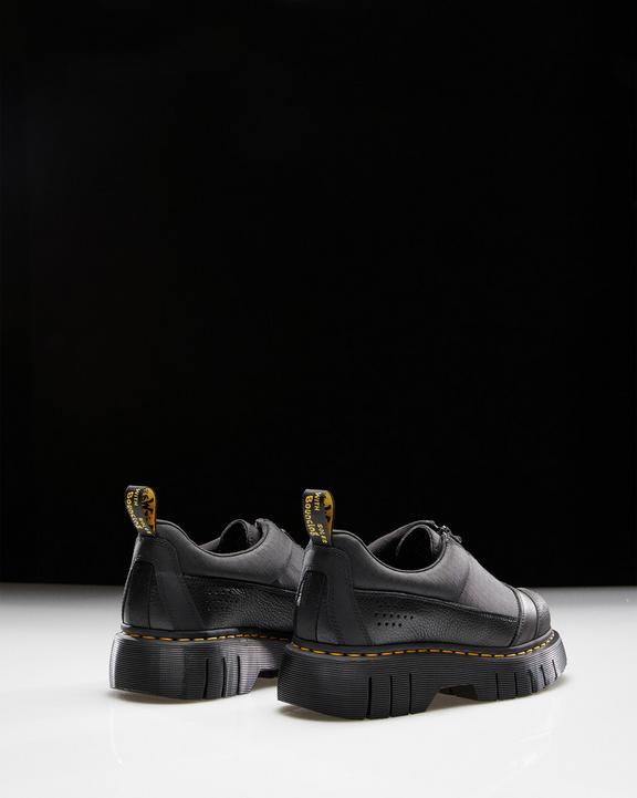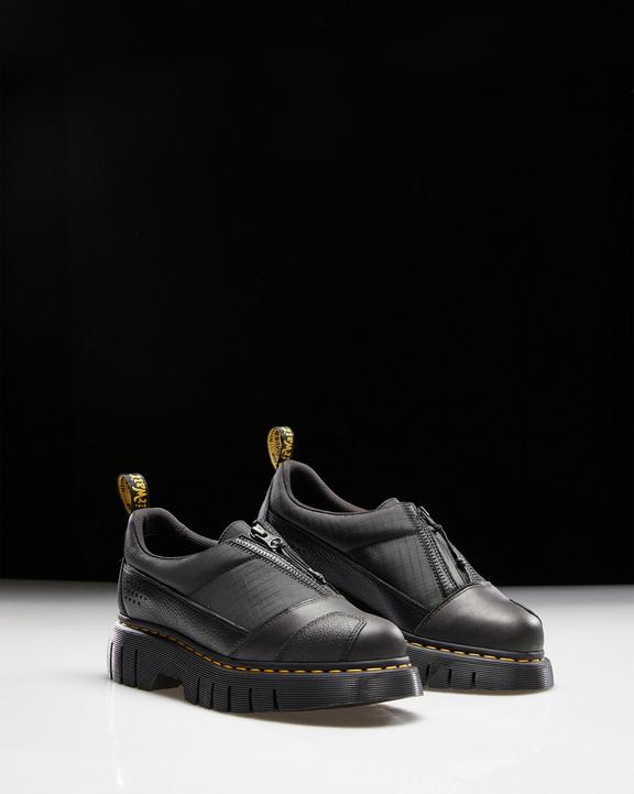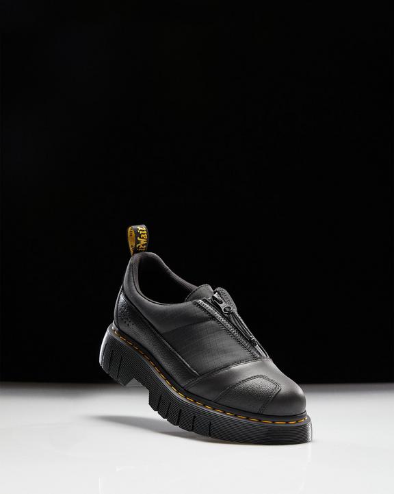 A new era begins. The 1461 shoe reworked and reimagined. An experiment that questions the nature of our traditional silhouettes and recontextualizes our industrial design history through a modernist lens. The 1461 form has been distorted and reconfigured replacing the standard lacing system with an AquaGuard zip enclosure. The upper is constructed from contrasting material panels to create textural contradictions. The construction prioritizes soft, full-grain Lunar leather for flexibility and durability. With hardwearing Sorento leather and flexible, tear-resistant Cosmo Hub Ripstop panels. Finished with scuff and water-resistant TecTuff rubber-grained leather across the toe and a molded rubber bisecting the heel. The shoe is set on our new Clubwedge outsole with exaggerated cleats and rugged aesthetic complimented with a cushioned SoftWair innersole. Each pair is marked as true Dr. Martens with a yellow welt stitch and AirWair heel loop. DM’s history colliding with an unknown future.