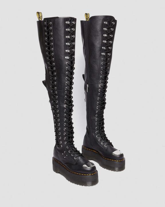 Dr. Martens 28-Eye Extreme Max Virginia Leather Knee High Boots Czarne | SN-DM84691