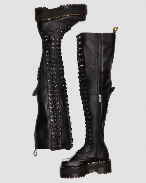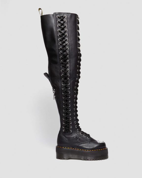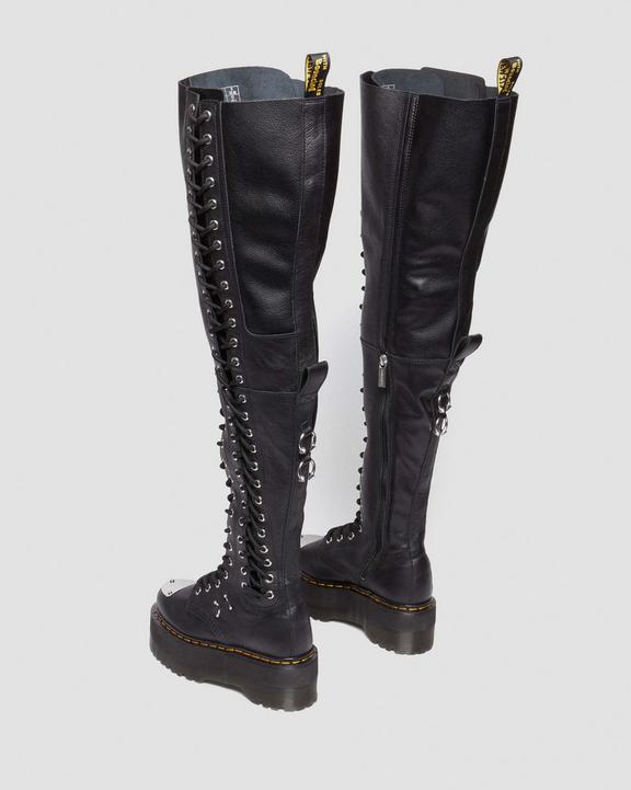 :: Dr. Martens 28-Eye Extreme Max Virginia Leather Knee High Boots Czarne | SN-DM84691