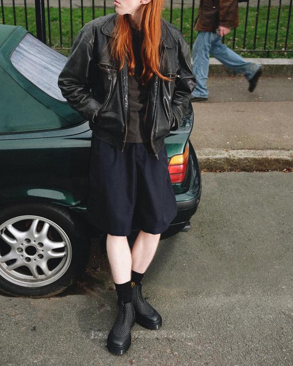 A signature DM’s silhouette — reimagined through a contemporary lens. This 2976 boot is constructed using an experimental combination of Grid Ripstop and Tumbled leather. The boot is stacked on an exaggerated Bex outsole with DM’s grooving and a double black welt stitch to emphasize our construction. The upper is made with a contrast grid ripstop and matte black trims, and the boot is tagged with a black and yellow heel loop.
