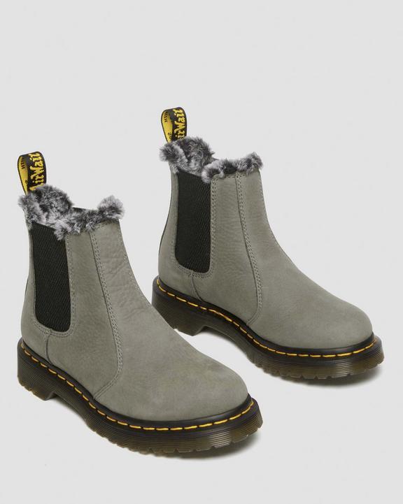 Dr. Martens 2976 Leonore Faux Fur Lined Nubuck Chelsea Boots Szare | SN-DM84328