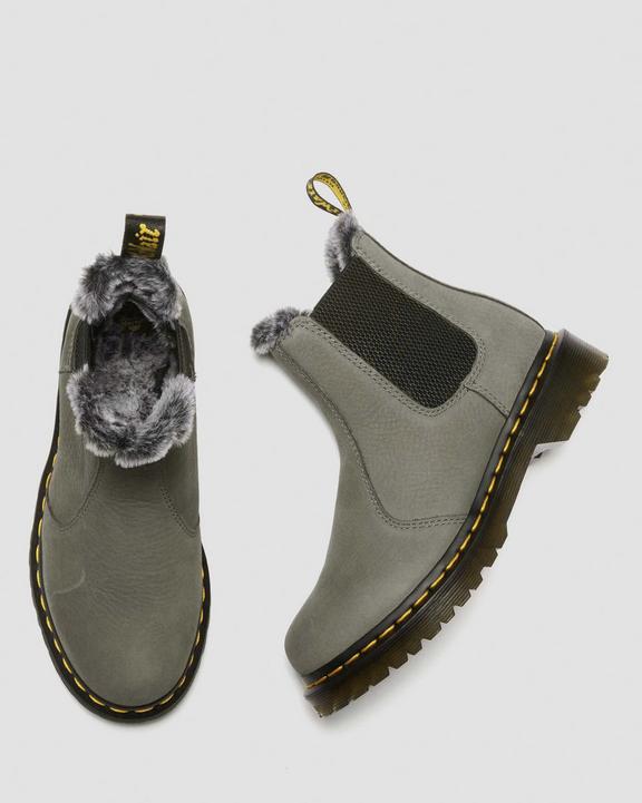 Dr. Martens 2976 Leonore Faux Fur Lined Nubuck Chelsea Boots Szare | SN-DM84432