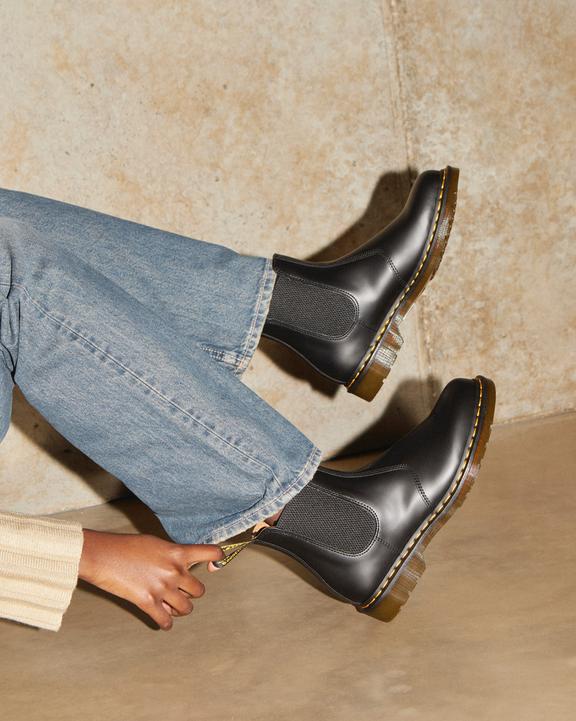 :: Dr. Martens 2976 Yellow Stitch Smooth Leather Chelsea Boots Czarne | SN-DM84837