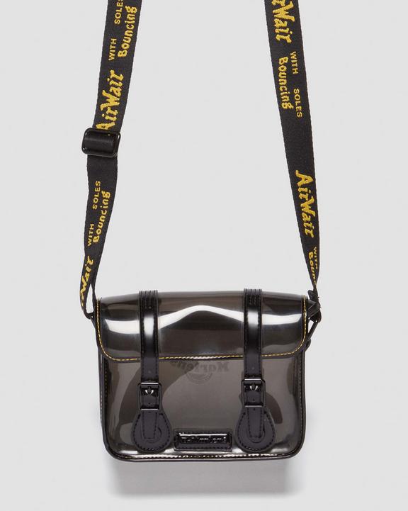 Nothing to hide. This mini transparent satchel is built from black clear PU and decked out with branded black hardware and an AirWair strap.