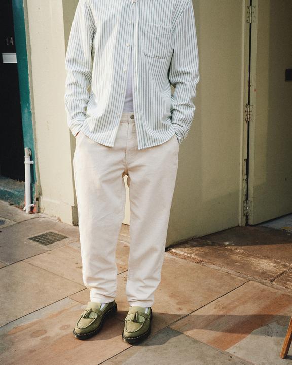 Our classic Adrian loafer reinvigorated for the long summer days. Built from summer-ready soft, textured Tumbled Nubuck in versatile neutral tones. Highlighted with contrast cream upper stitching with an EH Suede leather heel counter and kiltie fringe. Set on our traditional DMS trans sole with our signature yellow welt stitch. Each pair is fitted with a naturally antimicrobial cork insole for extra comfort in warm weather.