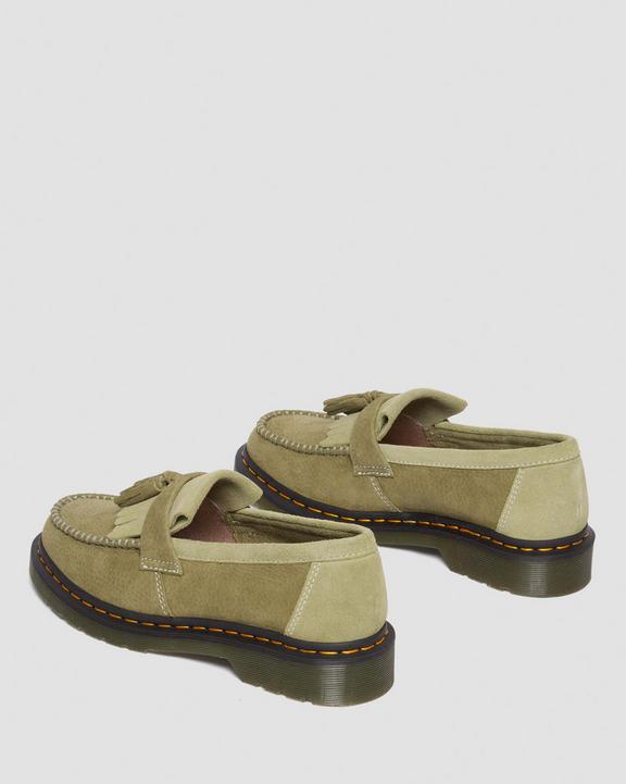 Dr. Martens Adrian Tumbled Nubuck Leather Tassel Loafers Oliwkowe | SN-DM84488