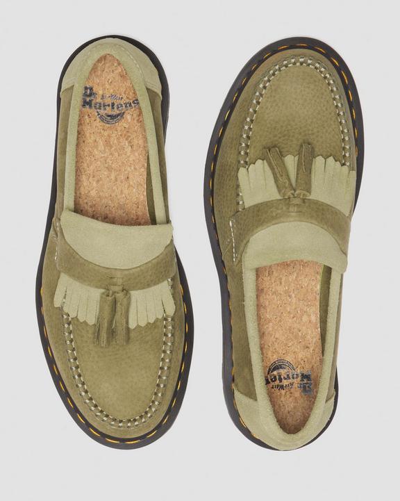 :: Dr. Martens Adrian Tumbled Nubuck Leather Tassel Loafers Oliwkowe | SN-DM84488