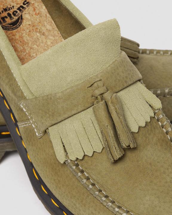 Dr. Martens Adrian Tumbled Nubuck Leather Tassel Loafers Oliwkowe | SN-DM85011