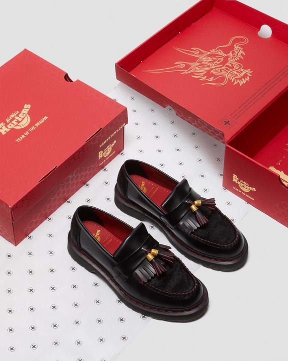 Dr. Martens Adrian Year of the Dragon Hair-On Tassel Loafers Black/Red/Black | SN-DM85000