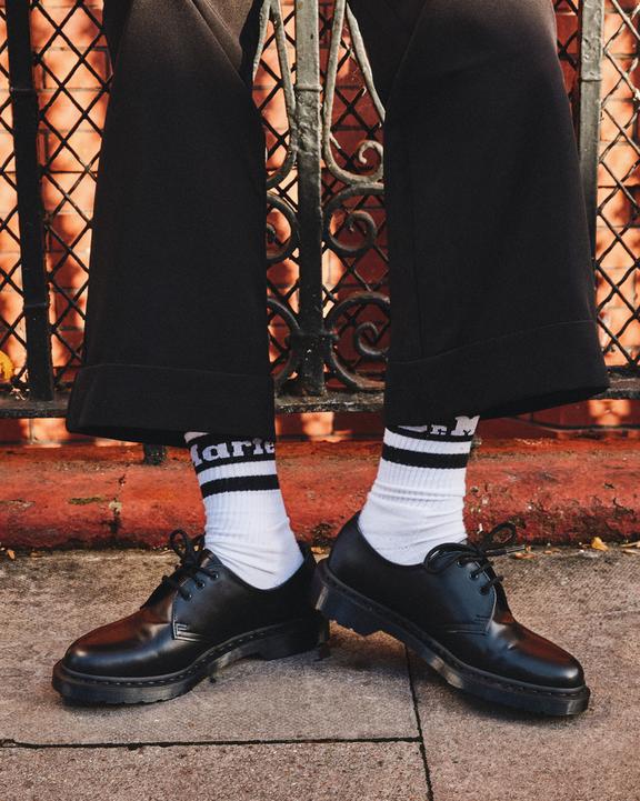 :: Dr. Martens Athletic Logo Organic Cotton Blend Socks White/Black | SN-DM85246