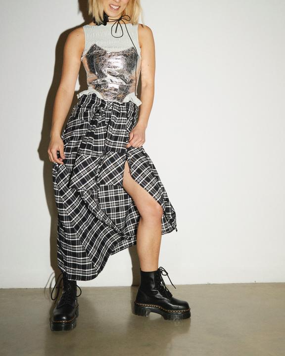 A towering platform. With everyday wearability. These newly-evolved boots pack all the height of our renowned Quad platform into a cutting-edge lightweight construction. Set on an innovative two-part sole — a lightweight EVA midsole and PVC outsole with rugged deep cleats — they bring less weight and more attitude. DM's at full volume. The boots are marked with all our signature DNA, including an amped-up edition of our unmistakable DMS tread pattern, as well as yellow welt stitching and a scripted AirWair heel loop.