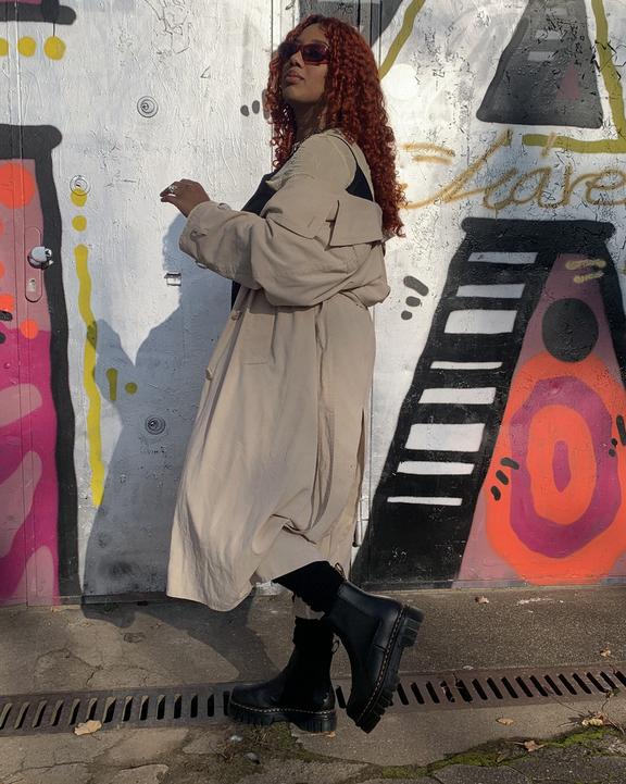 A towering platform. With everyday wearability. These newly-evolved Chelsea boots pack all the height of our renowned Quad platform into a cutting-edge lightweight construction. Set on an innovative two-part sole — a lightweight EVA midsole and PVC outsole with rugged deep cleats — they bring less weight and more attitude. DM's at full volume. The boots are marked with all our signature DNA, including an amped-up edition of our unmistakable DMS tread pattern, as well as yellow welt stitching and a scripted AirWair heel loop.