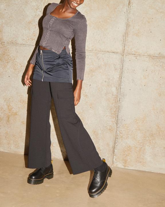 A towering platform. With everyday wearability. These newly-evolved shoes pack all the height of our renowned Quad platform into a cutting-edge lightweight construction. Set on an innovative two-part sole — a lightweight EVA midsole and PVC outsole with rugged deep cleats — they bring less weight and more attitude. DM's at full volume. The shoes are marked with all our signature DNA, including an amped-up edition of our unmistakable DMS tread pattern, as well as yellow welt stitching and a scripted AirWair heel loop.