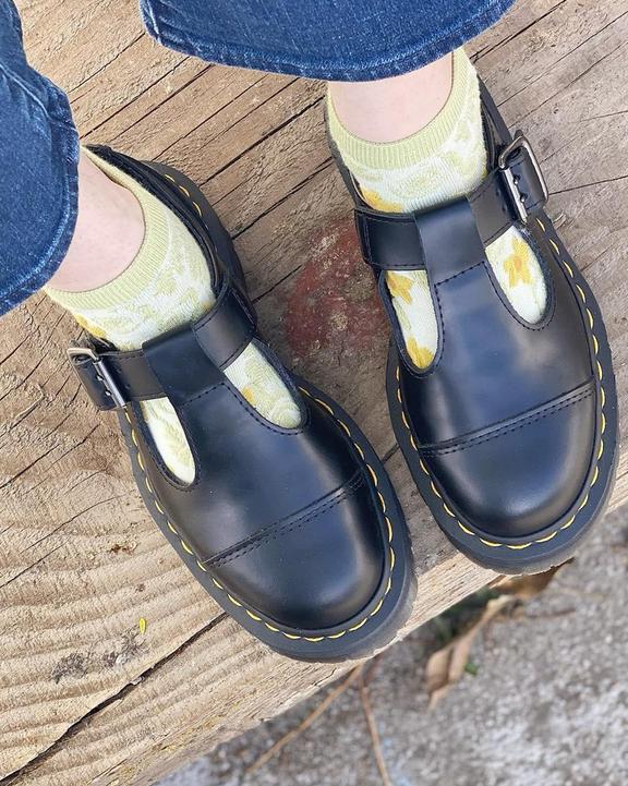 :: Dr. Martens Bethan Polished Smooth Leather Platform Shoes Czarne | SN-DM84736