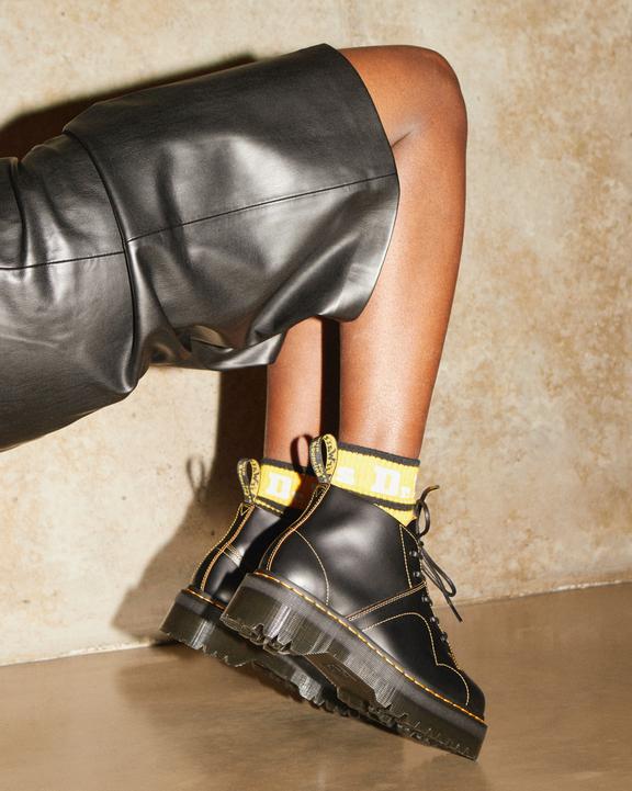 A sleek, slender shape with low-set laces, this is a classic Monkey boot silhouette with all the typical Docs markings. Our Church Quad boot has been revamped with an empowering high-rise sole — taking a vintage favorite and stacking it high with extra Docs attitude.