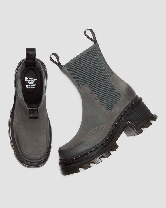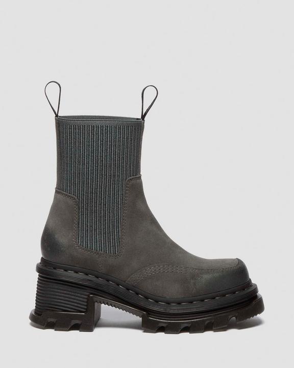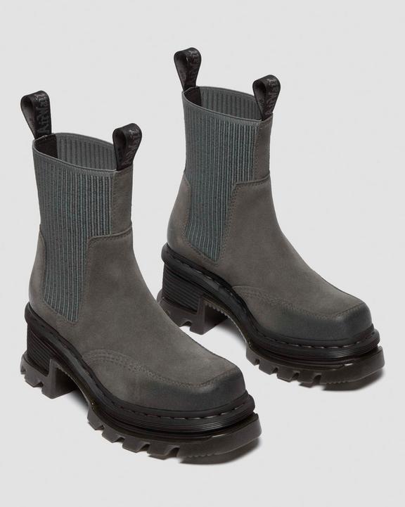 :: Dr. Martens Corran Chelsea Waxy Suede Heeled Boots Szare | SN-DM84370