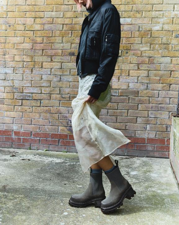 :: Dr. Martens Corran Chelsea Waxy Suede Heeled Boots Szare | SN-DM84647