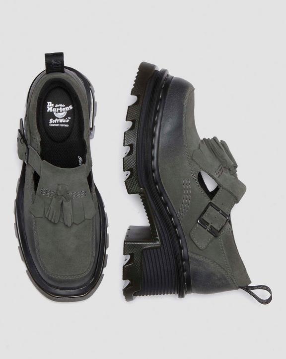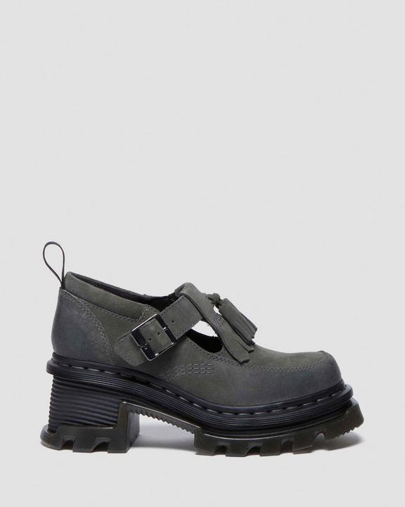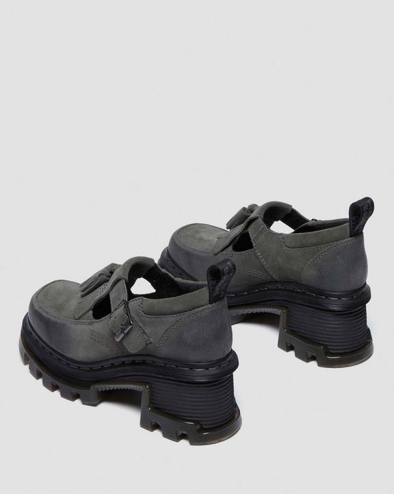 :: Dr. Martens Corran Waxy Suede Mary Jane Heeled Shoes Szare | SN-DM84650