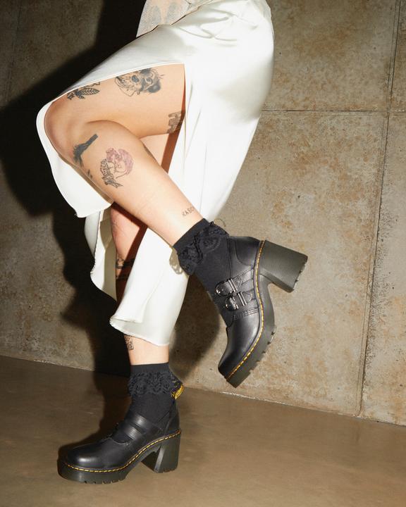 :: Dr. Martens Eviee Sendal Leather Heeled Shoes Czarne | SN-DM84739