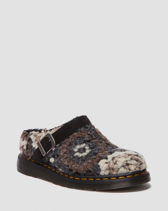 Dr. Martens Isham Crochet Wool Suede Mules Czarne | SN-DM84401