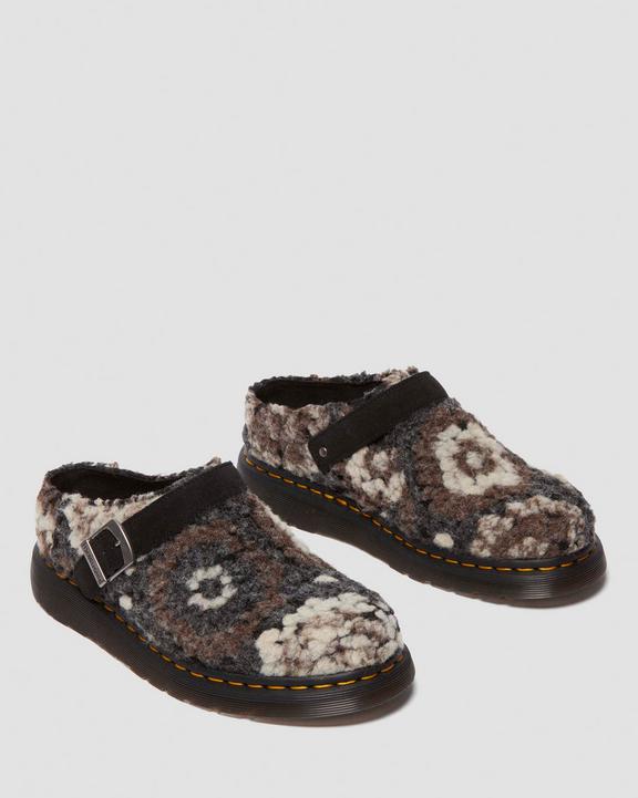 :: Dr. Martens Isham Crochet Wool Suede Mules Czarne | SN-DM85082