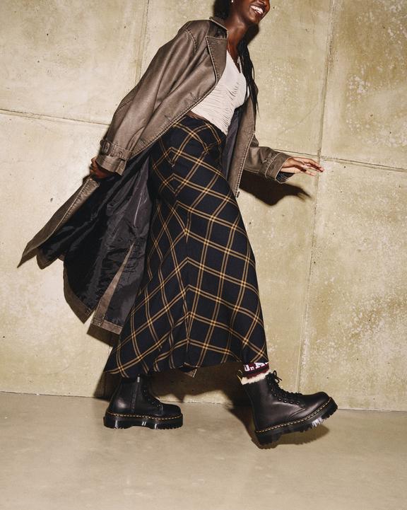 :: Dr. Martens Jadon Boot Leather Faux Fur Lined Platforms Czarne | SN-DM84151