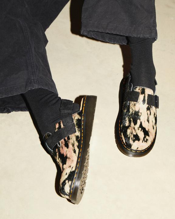 Dr. Martens Jorge Ii Contrast Hair On Slingback Mule Black/Beige | SN-DM84616
