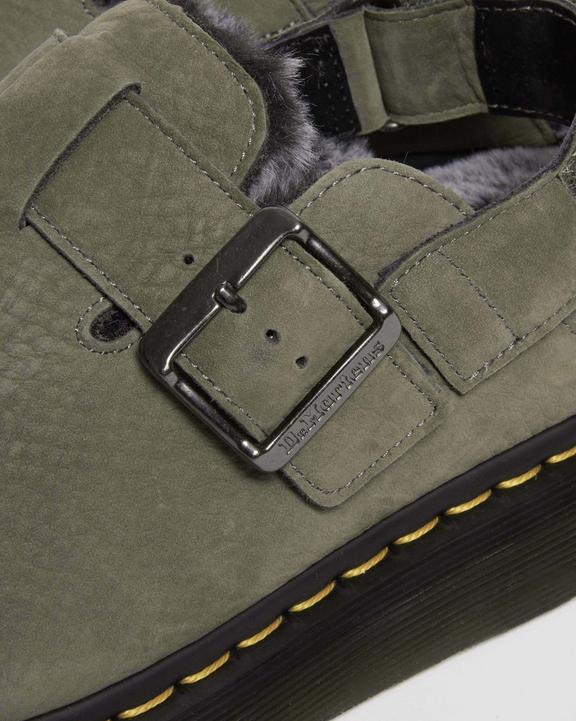 :: Dr. Martens Jorge II Faux Fur Lined Nubuck Slingback Mules Szare | SN-DM84444