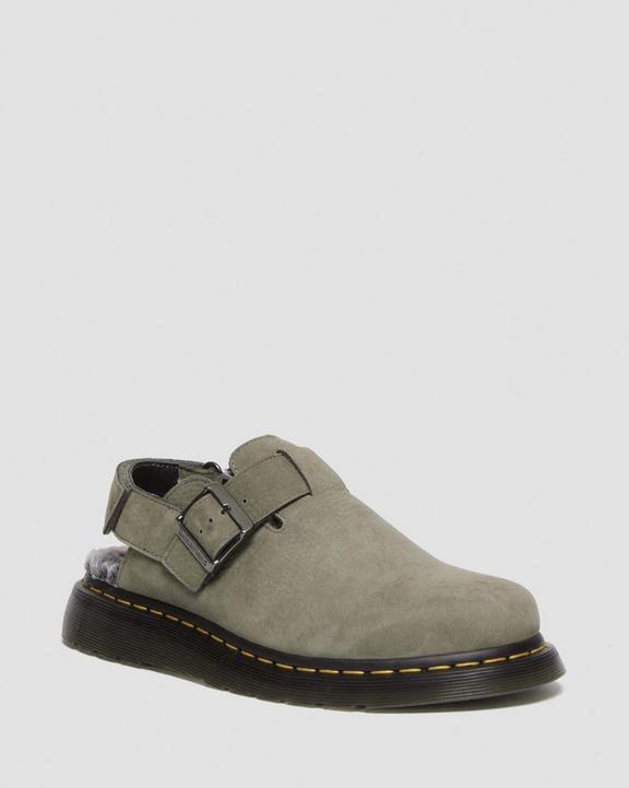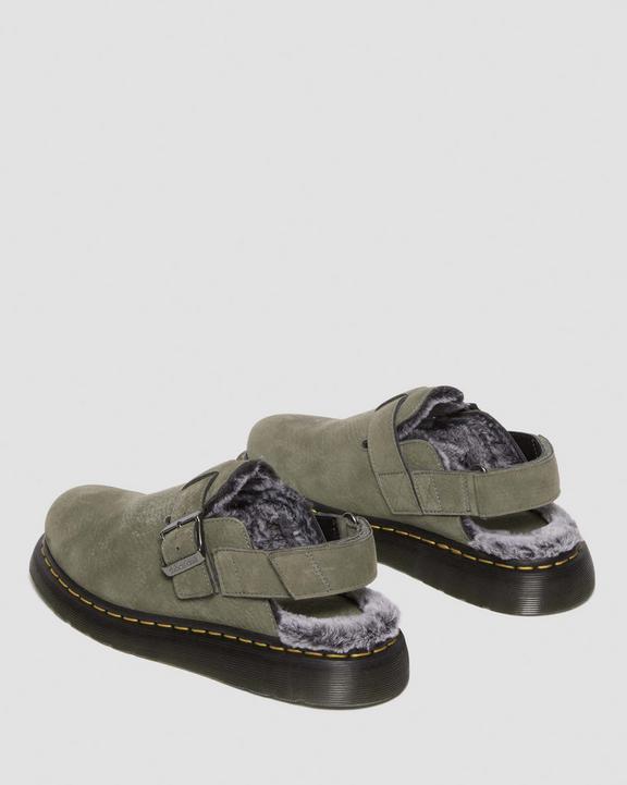 :: Dr. Martens Jorge II Faux Fur Lined Nubuck Slingback Mules Szare | SN-DM84585