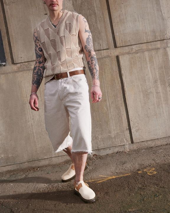 Perfect for the summer months. Designed to go beyond. Our celebrated mule returns in timeless EH Suede, a soft textured leather reinforced with DM's trademark durability. Our warm weather slip-on is available in a seasonal palette and secured with contrast heel riptape and front buckle straps. Completed with antique gold hardware and our classic yellow welt stitch. Fixed atop our easy riding Shore sole.