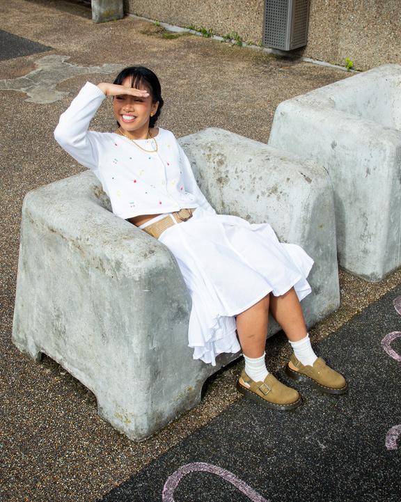 Part shoe, part sandal: the Jorge II mule is all about easy wear and everyday versatility. This pair is built with nubuck uppers and set on our classic Shore sandal sole. Ready to go all summer long. Two adjustable straps ensure a comfortable fit. Yellow welt stitching will mark you out as a DM’s wearer.