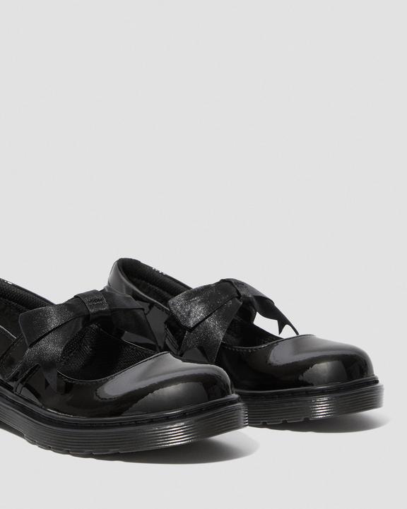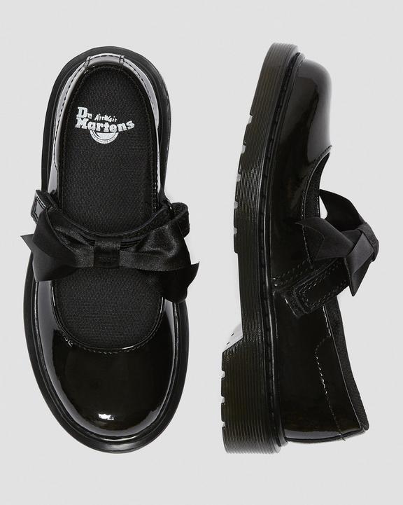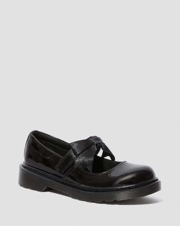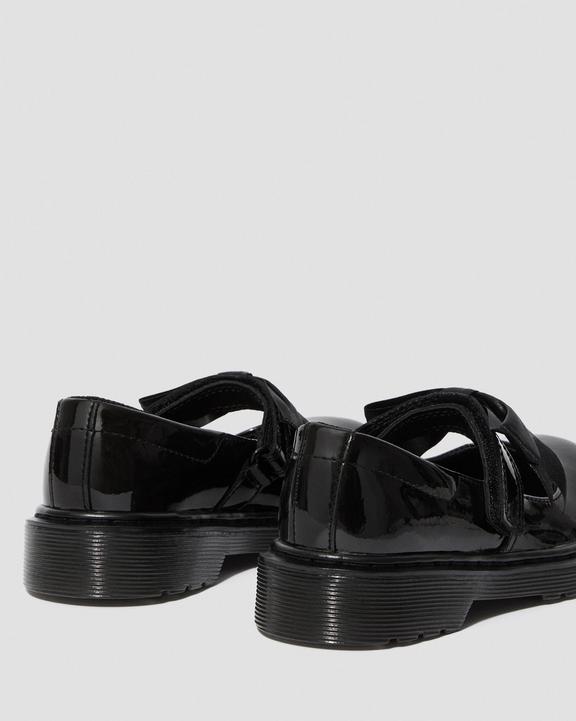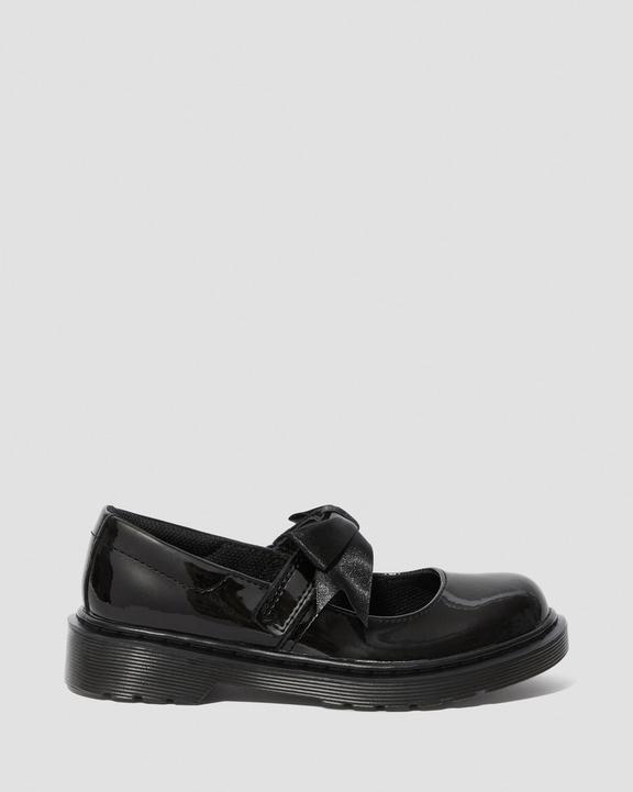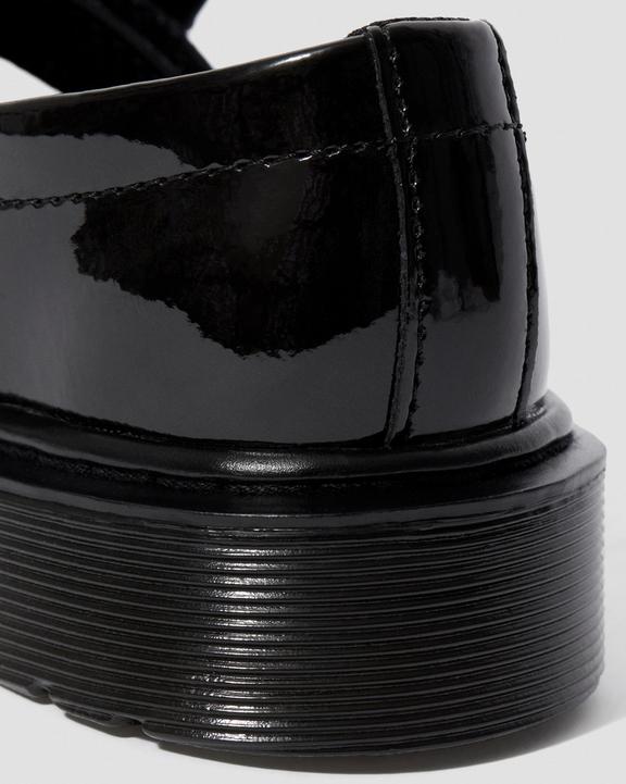 What's better than a sweet, innocent Mary Jane shoe? One that's made in the classic Dr. Martens style. We've dressed up the quintessential grade-school shoe with a T-bar hook-and-eye strap and glossy patent leather. Because what smart girl wants to wear a plain old Mary Jane when they could rock the sass of Dr. Martens—yellow stitching, side grooves and all?