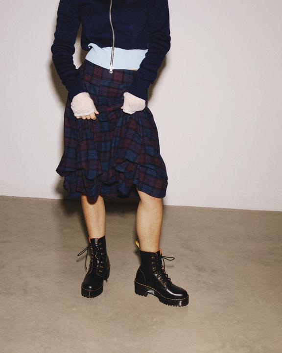 The Leona is packed with rugged features: a commando tread, an extra-empowering platform sole with a chunky heel, antiqued brass tunnel eyelets and a sleek silhouette. The result? A women's boot that strikes the perfect balance between femininity and the tough, rebellious Dr. Martens spirit.