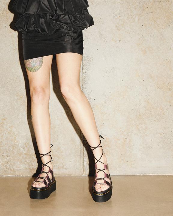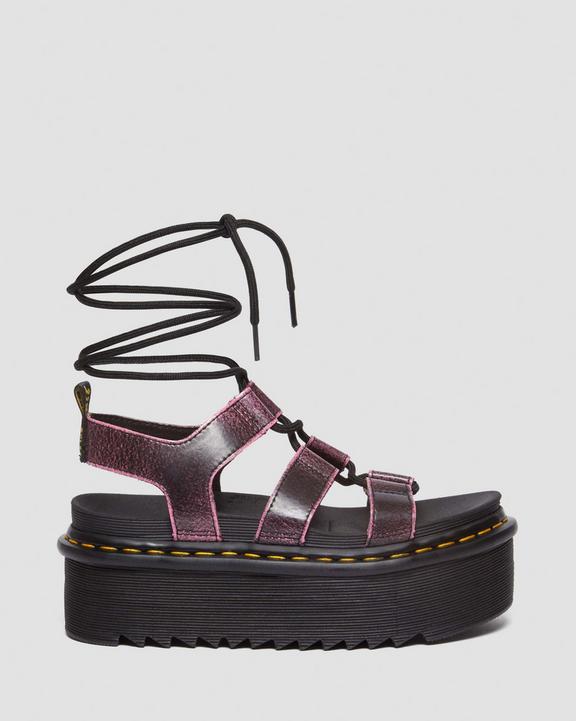 :: Dr. Martens Nartilla Distressed Leather Platform Gladiator Sandals Black/Pink | SN-DM84632