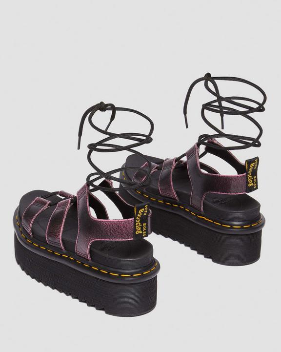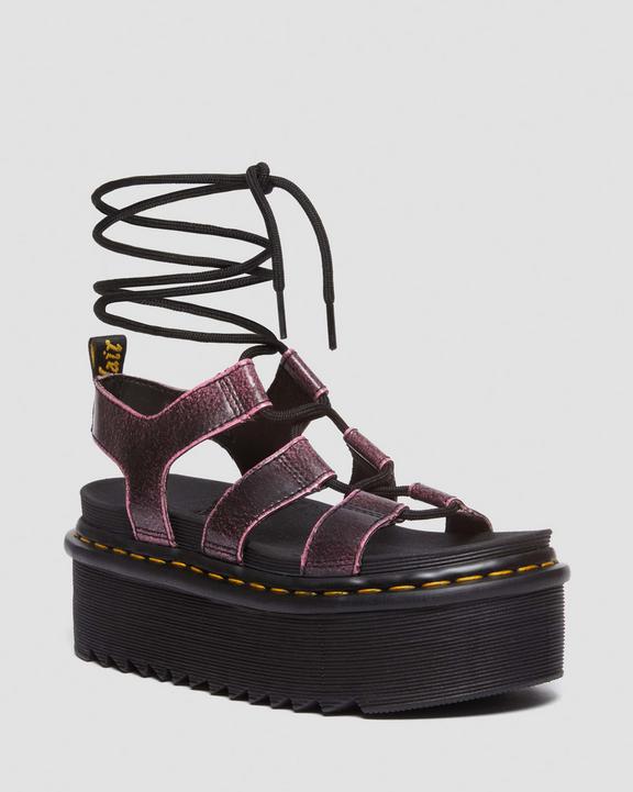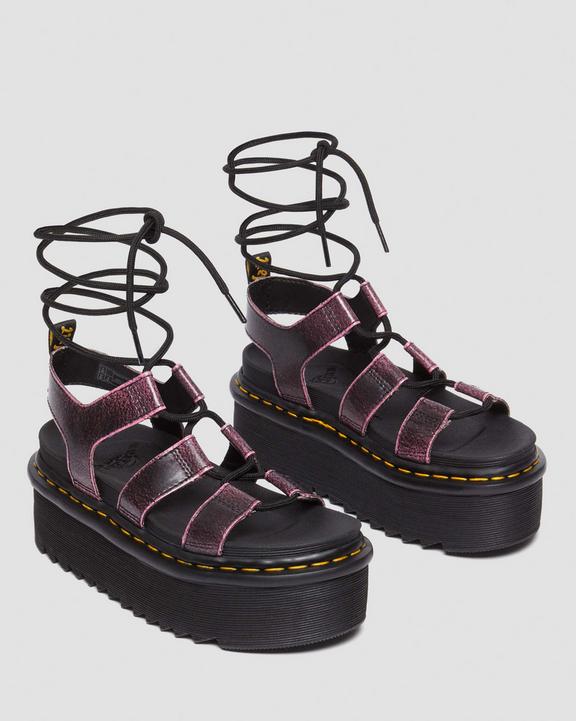 :: Dr. Martens Nartilla Distressed Leather Platform Gladiator Sandals Black/Pink | SN-DM84709