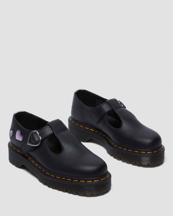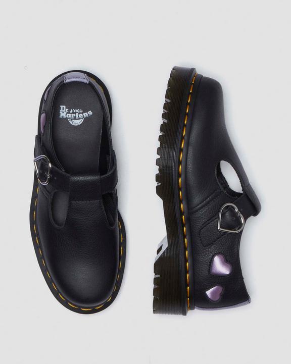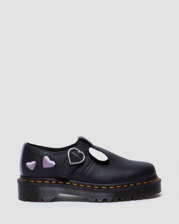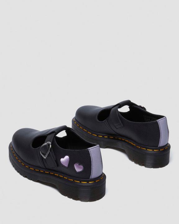 Dr. Martens Polley Heart Virgina Satin Mary Jane Shoes Black/Lavender/Purple | SN-DM84471