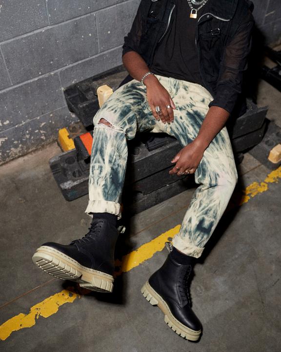 Classic silhouettes — elevated. We've reworked our lightweight two-part Bex Neoteric sole in standout pale olive. The two-part sole combines a lightweight EVA mid-section anchored by a cleated PVC outsole — with a tonal welt stitch for a bold monochromatic finish. This version of our 8-eye Rikard boot is built from smooth, full-grain Lucido leather with a padded collar and tongue and is fitted with a SoftWair insole for enhanced comfort from the first step. Finished with a pale olive AirWair heel loop.
