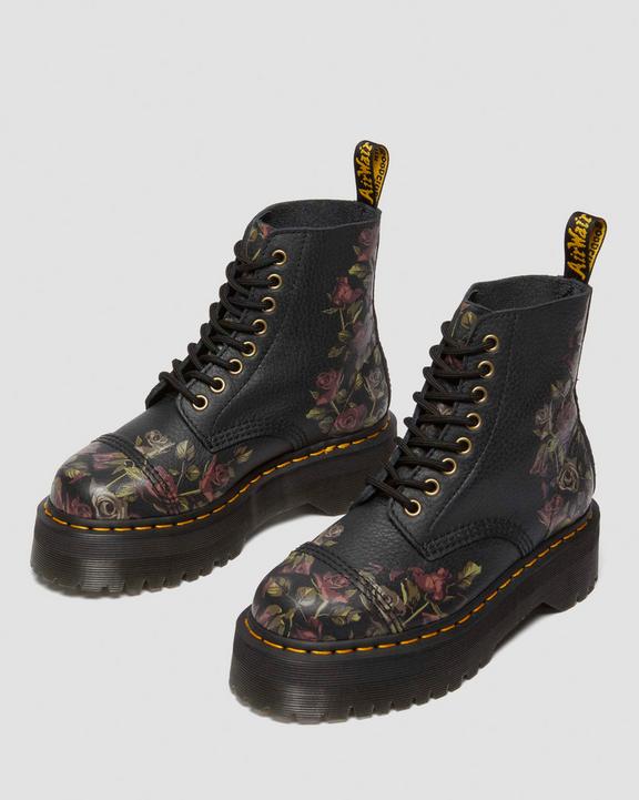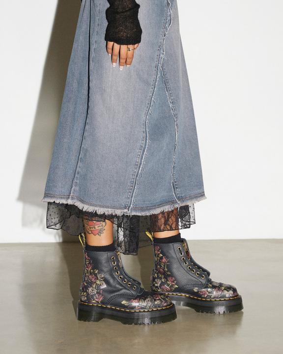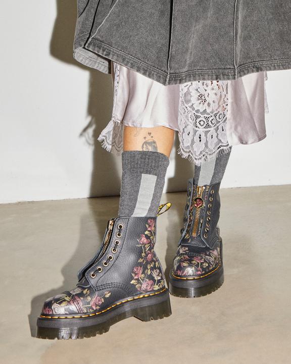 :: Dr. Martens Sinclair Decayed Roses Leather Platform Boots Czarne | SN-DM84697