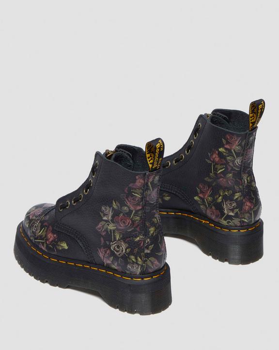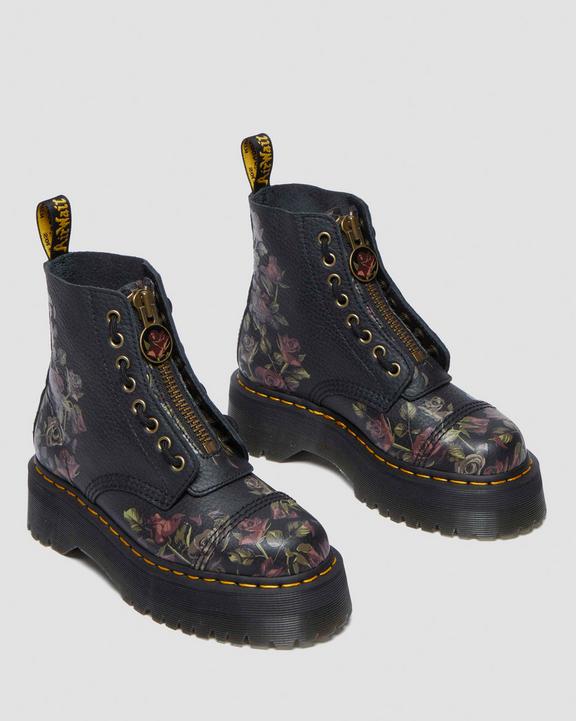 Dr. Martens Sinclair Decayed Roses Leather Platform Boots Czarne | SN-DM84697