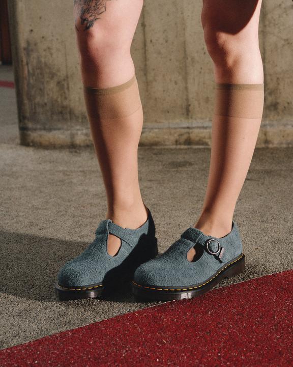 A subversive staple, the classic T-bar silhouette has been adopted and reinvented by rebels and punks for decades. This rework of the silhouette retains elements of traditional detail with a foundation of Dr. Martens DNA. The shoe is built from Long Napped suede and fitted with a Damascus-style buckle. Our DMS sole is secured with signature yellow welt stitching.