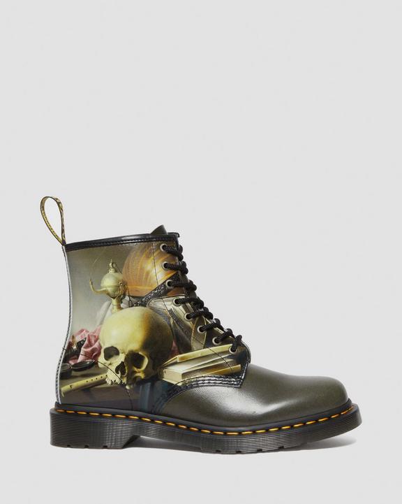The Dr. Martens x The National Gallery: Harmen Steenwyck collection shines a light on Steenwyck’s most famous painting, ‘Still Life: An Allegory of the Vanities of Human Life’. Signature features of the 1460 boot form the foundation of the modified style: our classic 8-eye silhouette. Still Life: An Allegory of the Vanities of Human Life Yellow welt stitching. Robust leather. Original soles. Steenwyck’s art is wrapped around the boot and finished off with surrounding black undertones, antique gold hardware and a dual-branded insole