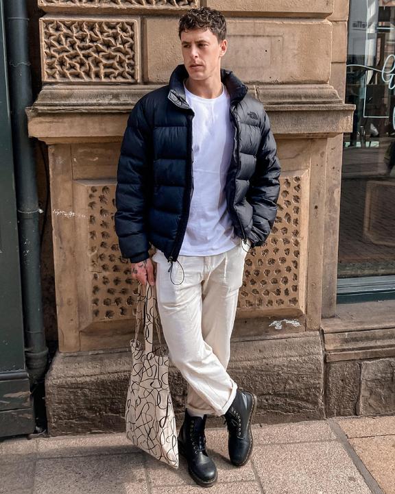 Our classic unisex 8-eye 1460 boot — that's 100% vegan. Our black Felix Rub Off is a high-shine synthetic material with a premium feel and a subtle finish.