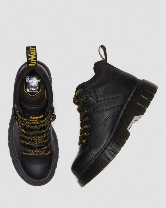 :: Dr. Martens Woodard Grizzly Leather Low Casual Boots Czarne | SN-DM84842
