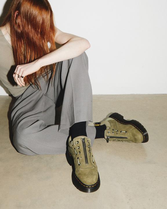 :: Dr. Martens Woodard Tumbled Nubuck Leather Low Casual Boots Oliwkowe | SN-DM84554