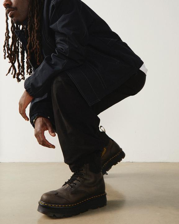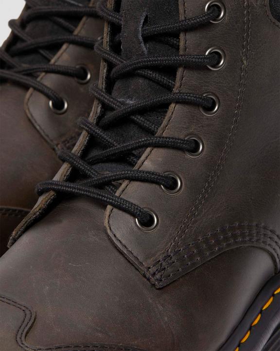 :: Dr. Martens Zebzag 8 Ties Burnish Waxy Lace Up Boots Black/Grey | SN-DM84196