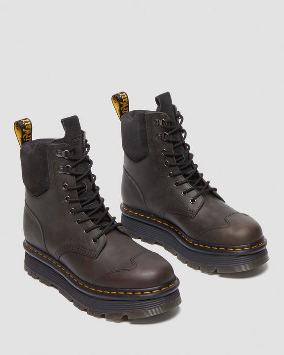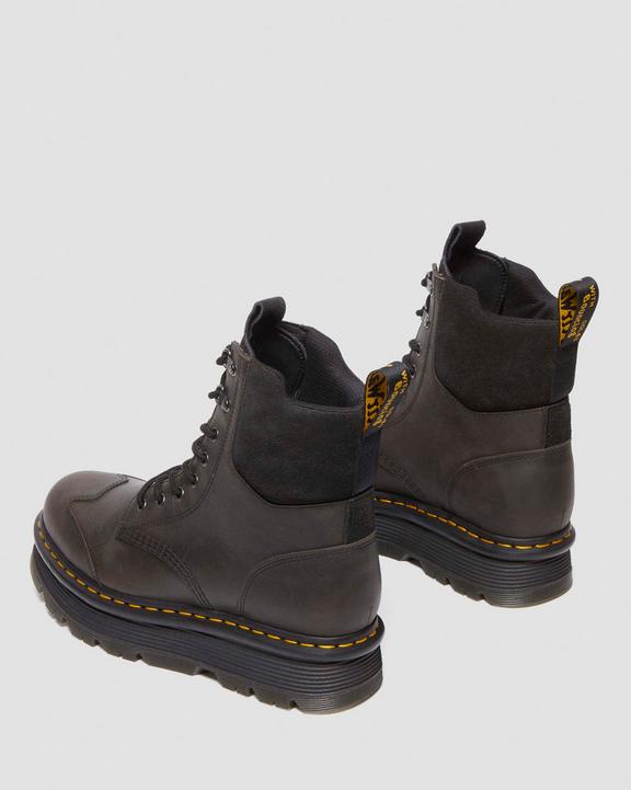 Dr. Martens Zebzag 8 Ties Burnish Waxy Lace Up Boots Black/Grey | SN-DM84196